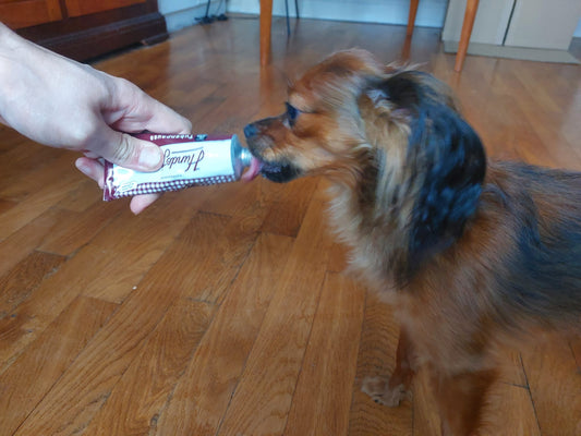 Mon chien Raymond se régale. Format vraiment pratique. On ne s'en met pas plein les mains et les friandises se mangent facilement.
