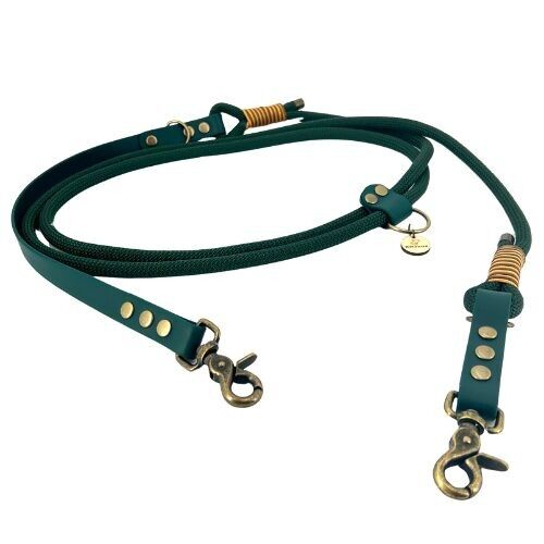 Laisse MULTIPOSITION paracorde / biothane vert foncé