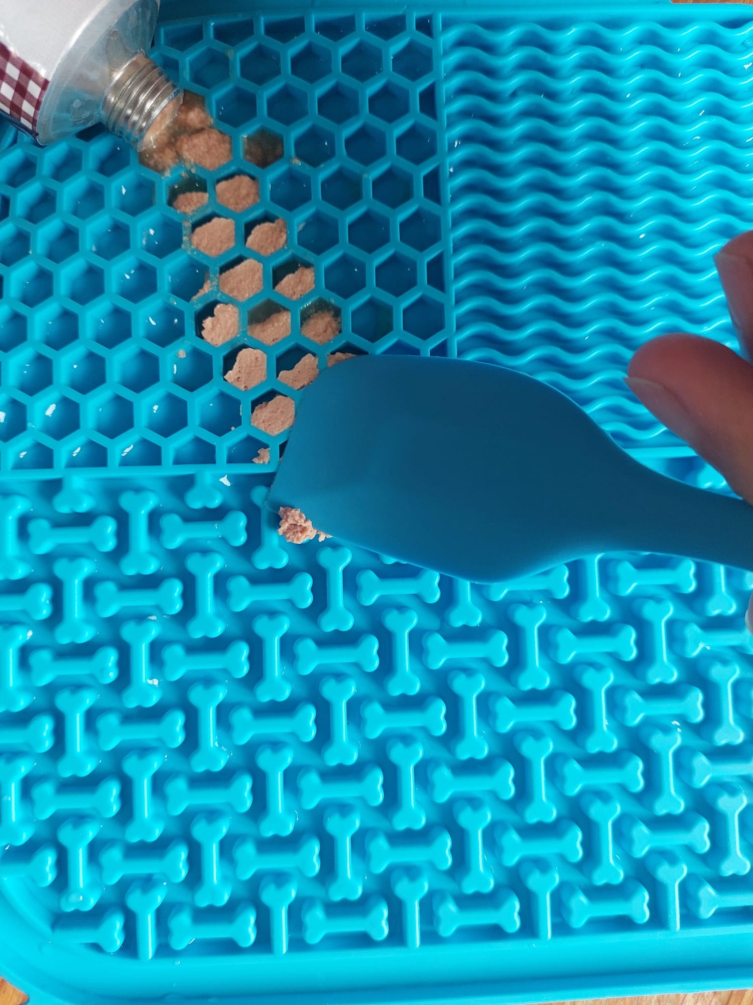 Vous pouvez donner la pâtée à même le tube ou bien étaler la pâtée sur un tapis de léchage.