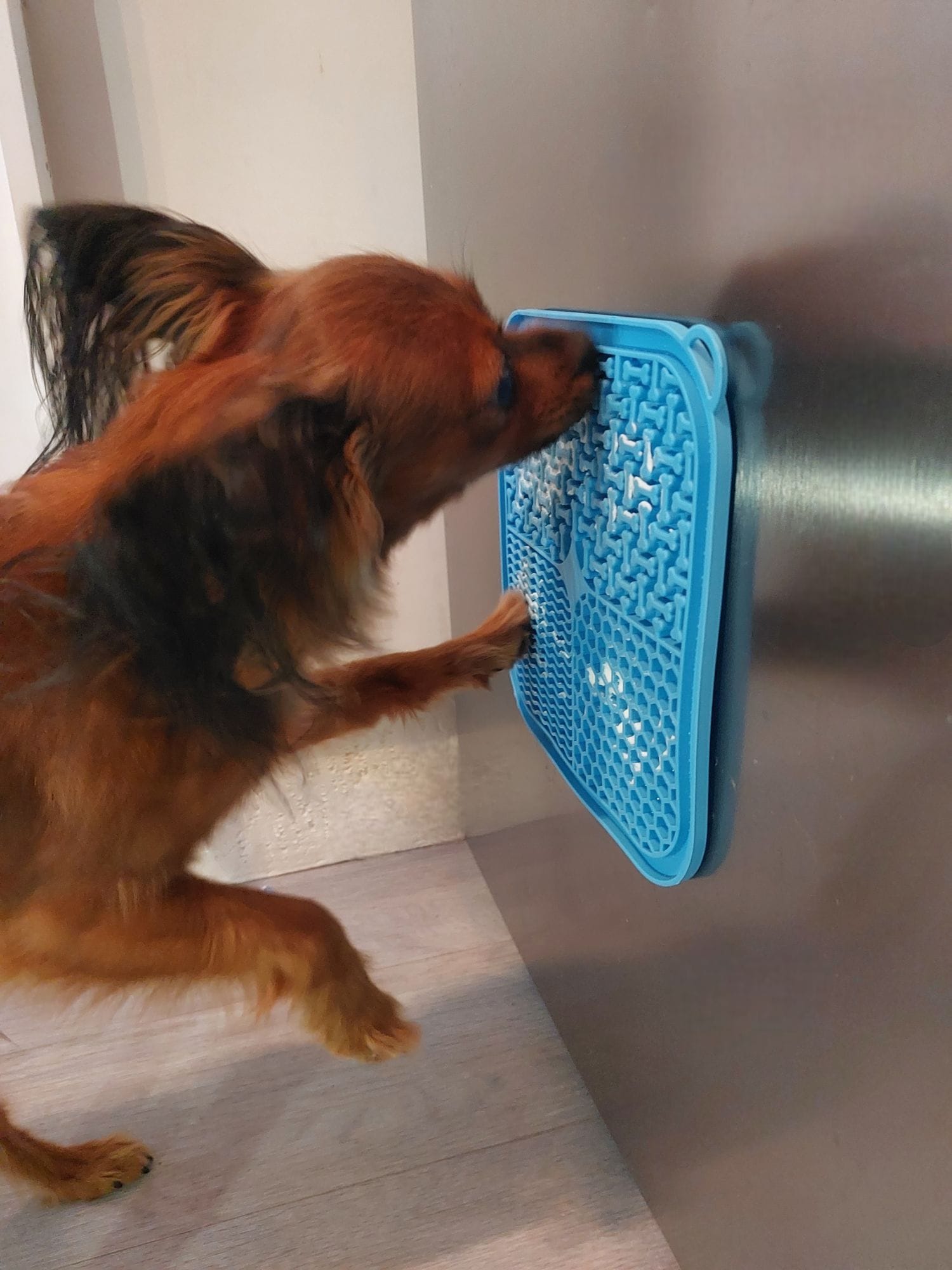 Ce tapis de léchage fera le bonheur de vos toutous. Vous pouvez étaler du fromage ou du beurre de cacahuètes.